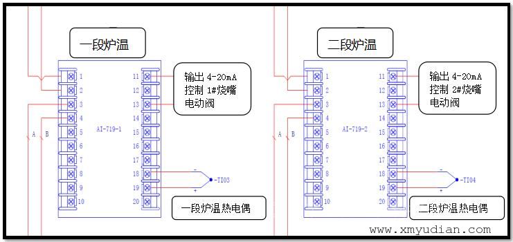 4.1锌温控制滞后性很大,用PLC的PID很难得到好的控制,所以增加了锌温仪表(厦门宇电AI-719A2/N/N/N/N/S4/N)