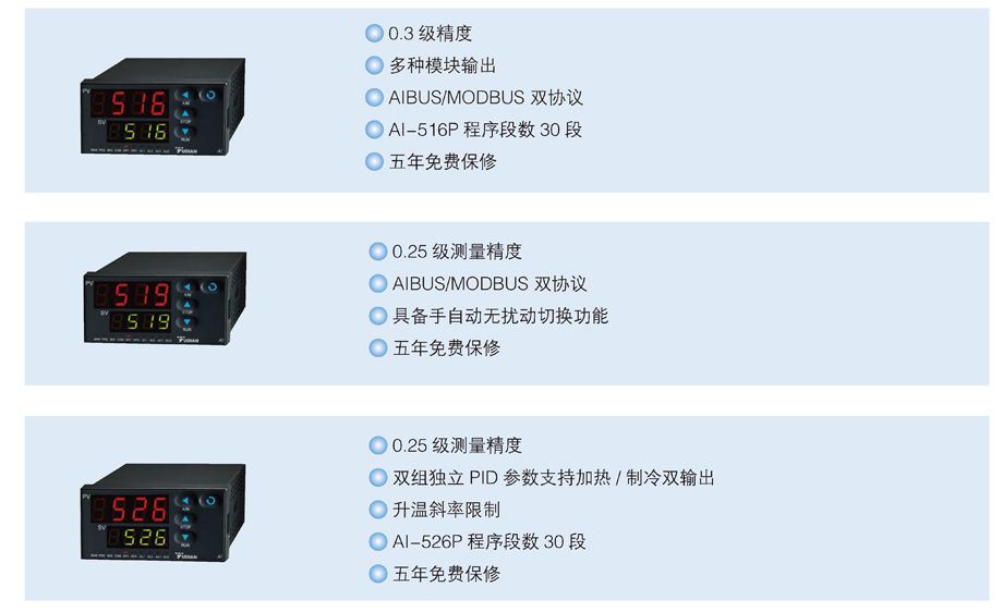 AI系列通用型人工智能温度控制器/调节器——功能完善通用性强的人工智能温度控制器/调节器。产品按十年以上寿命设计,五年免费保修。产品规格丰富,可按客户行业提供多种不同功能的型号,交货迅速且维护方便。