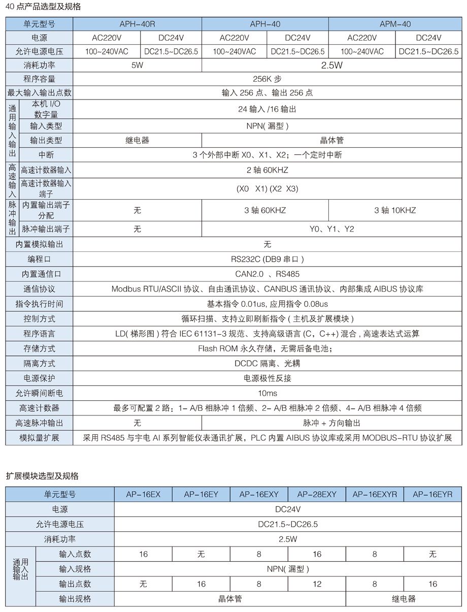 4、扩展方便,除常规的14、28和40点产品外,40点产品可以外接多个扩展模块,可扩展至256点。