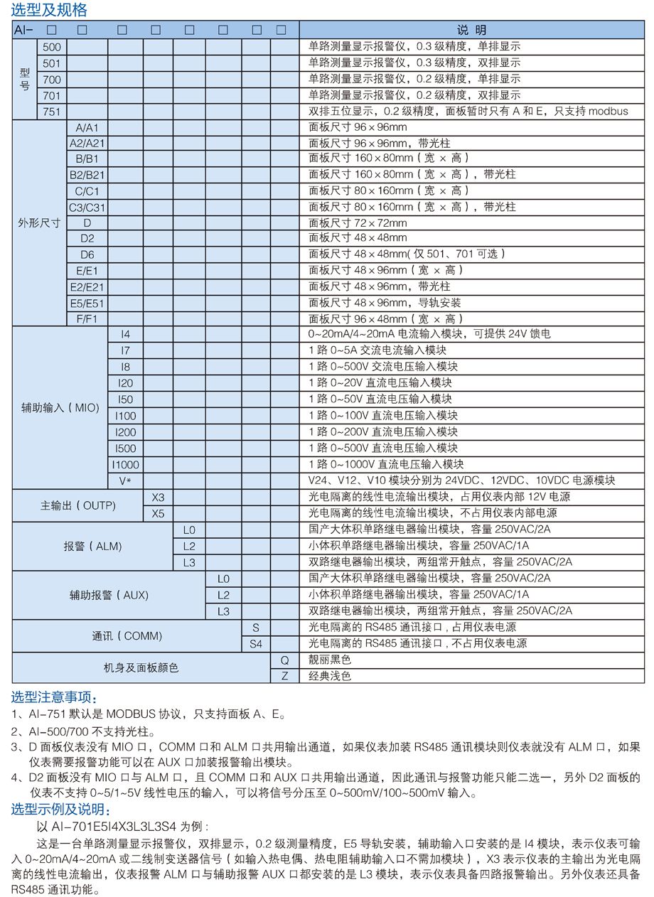 AI系列单路测量显示报警仪表,适用于温度、湿度、压力、流量、液位多种物理参数的测量、显示、报警、变送与通讯, 广泛应用于电力、化工、冶金、食品加工、机械制造等领域。产品按十年以上寿命设计,五年免费保修。