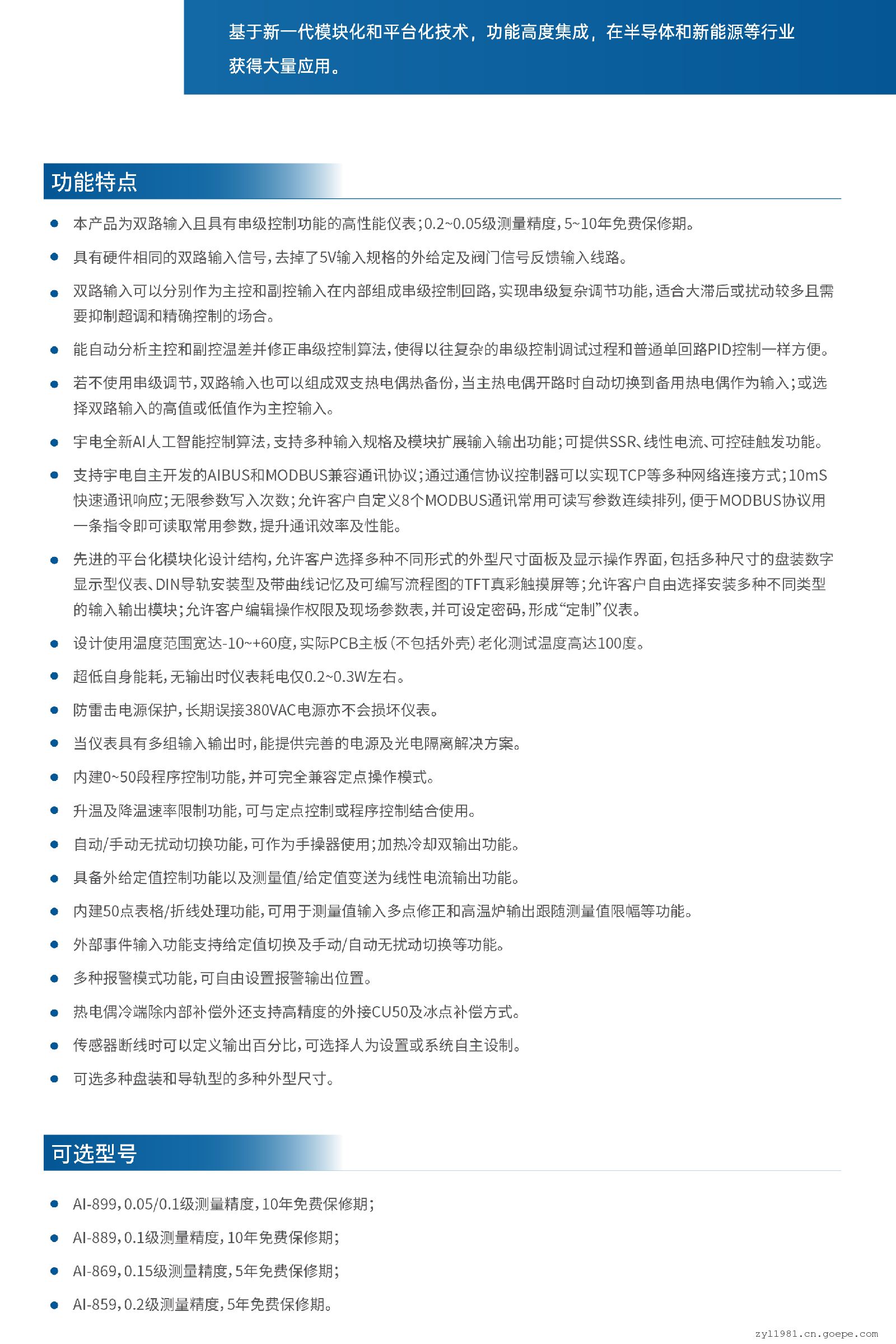 AI-8*9系列高性能多功能调节器 > YUDIANAI-869串级宇电高性能温控器/调节器