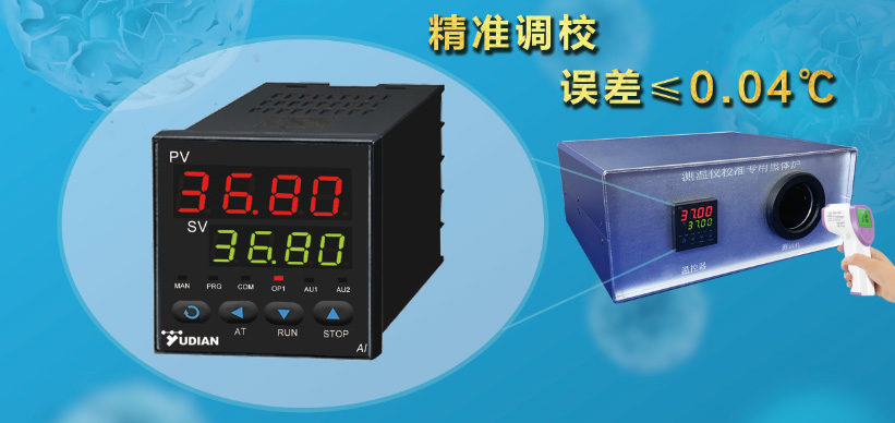 AI-720JM系列高精度智能温控器/黑体炉专用温控器,该表采用PT100传感器信号输入,固态继电器输出,测量精度0.1级,尺寸仅48×48×95mm(宽×高×深);宇电公司针对本次疫情所需,对AI-720JM温控器进行精准调校,在35-42℃范围内误差≤0.04℃,温度稳定性±0.05℃/30min。